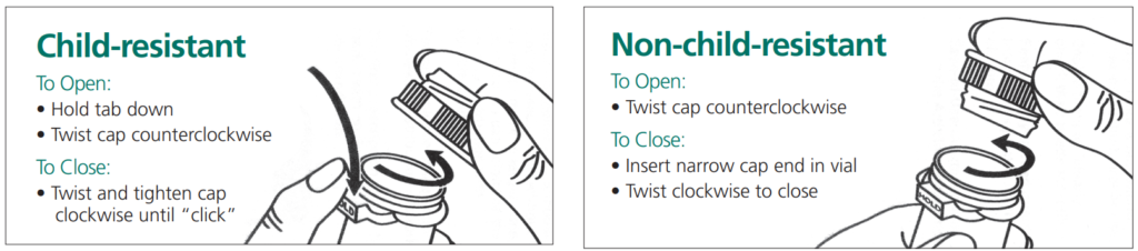 - Dual Purpose (Reversible) and Child Resistant caps.